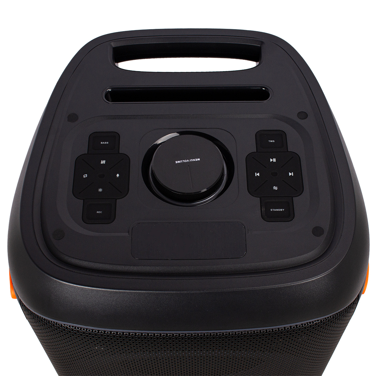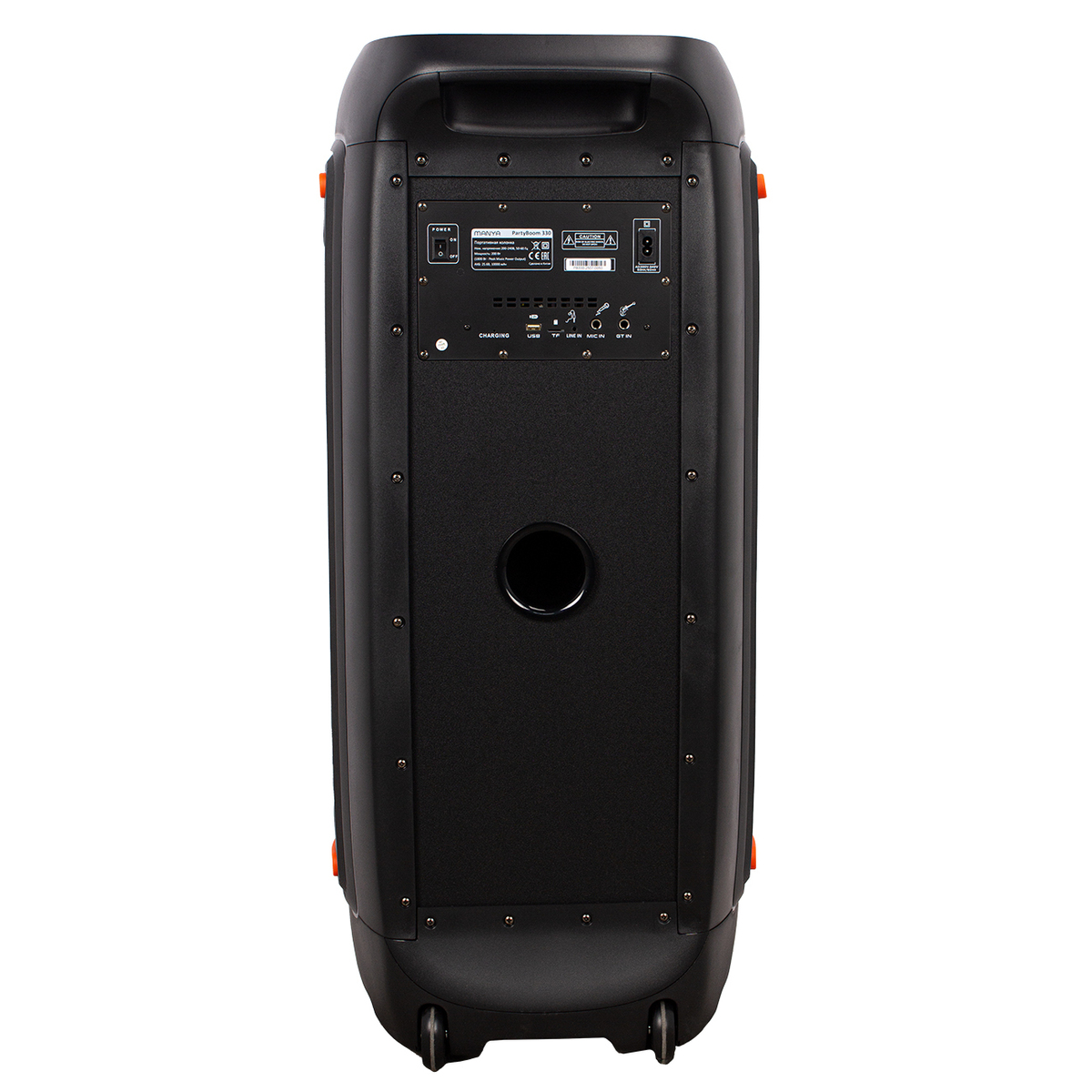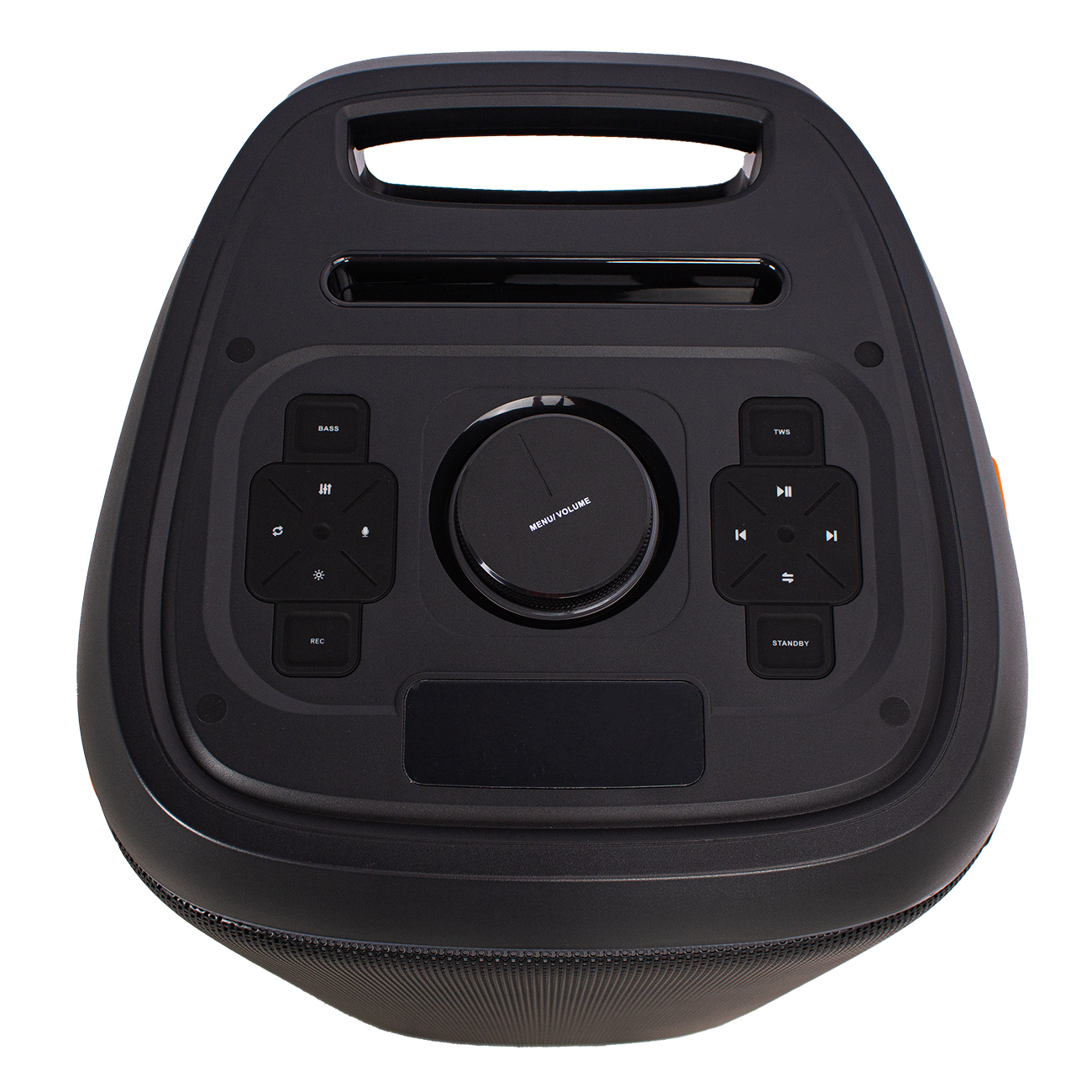 Динамическая LED подсветка. Корпус из дерева. Мощный двухканальный усилитель (модель TPA3221). Аудиопроцессор (DSP) с поддержкой радиоинтерфейса Bluetooth (модель BP1048). Беспроводной микрофон. Акустические динамики с резиновым подвесом