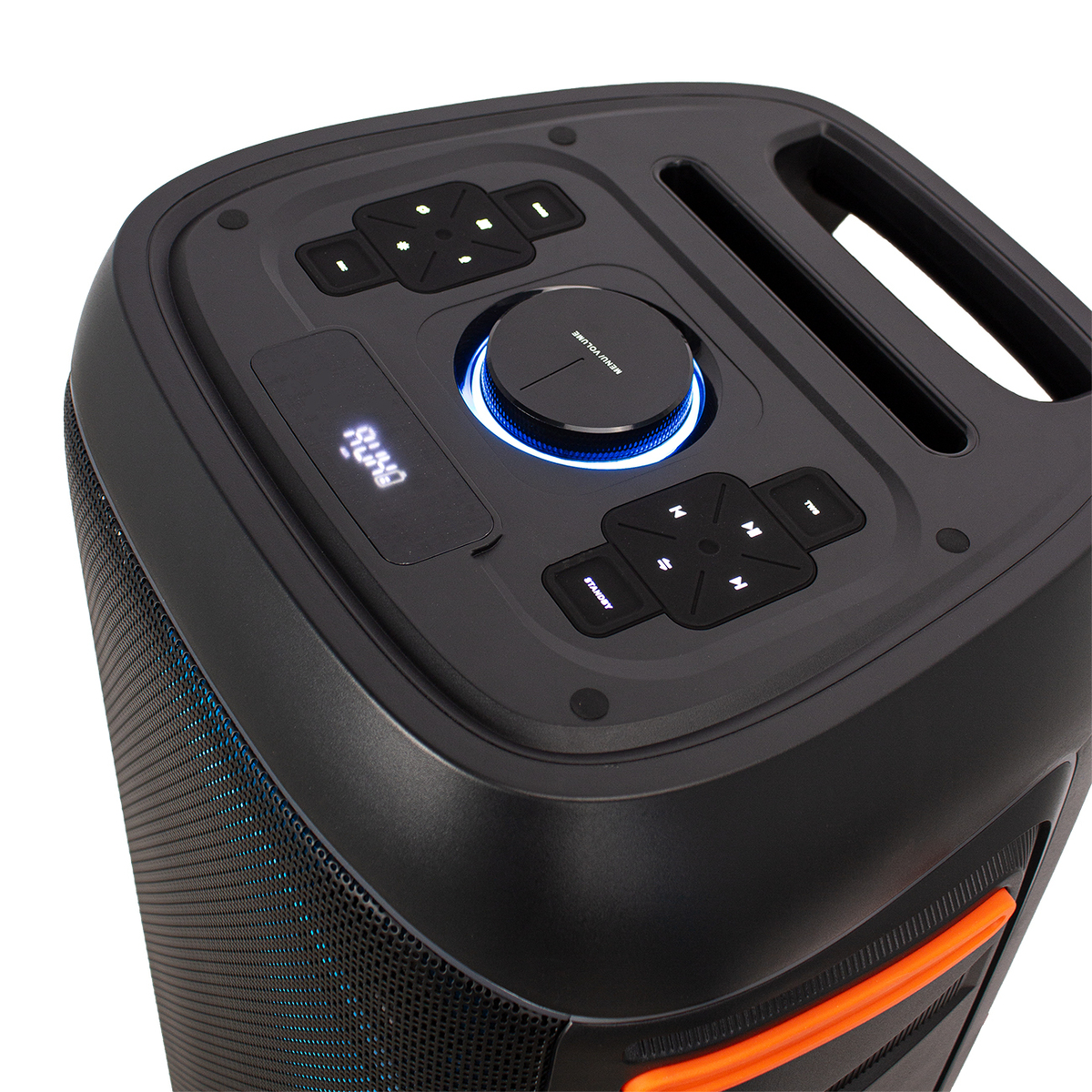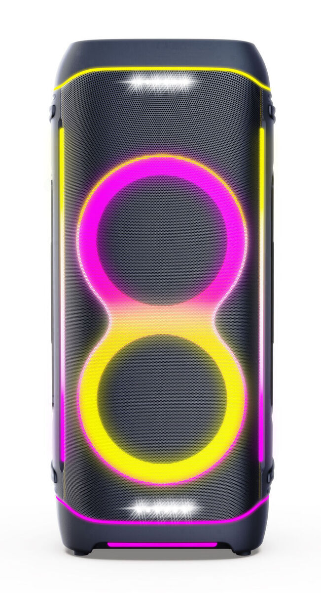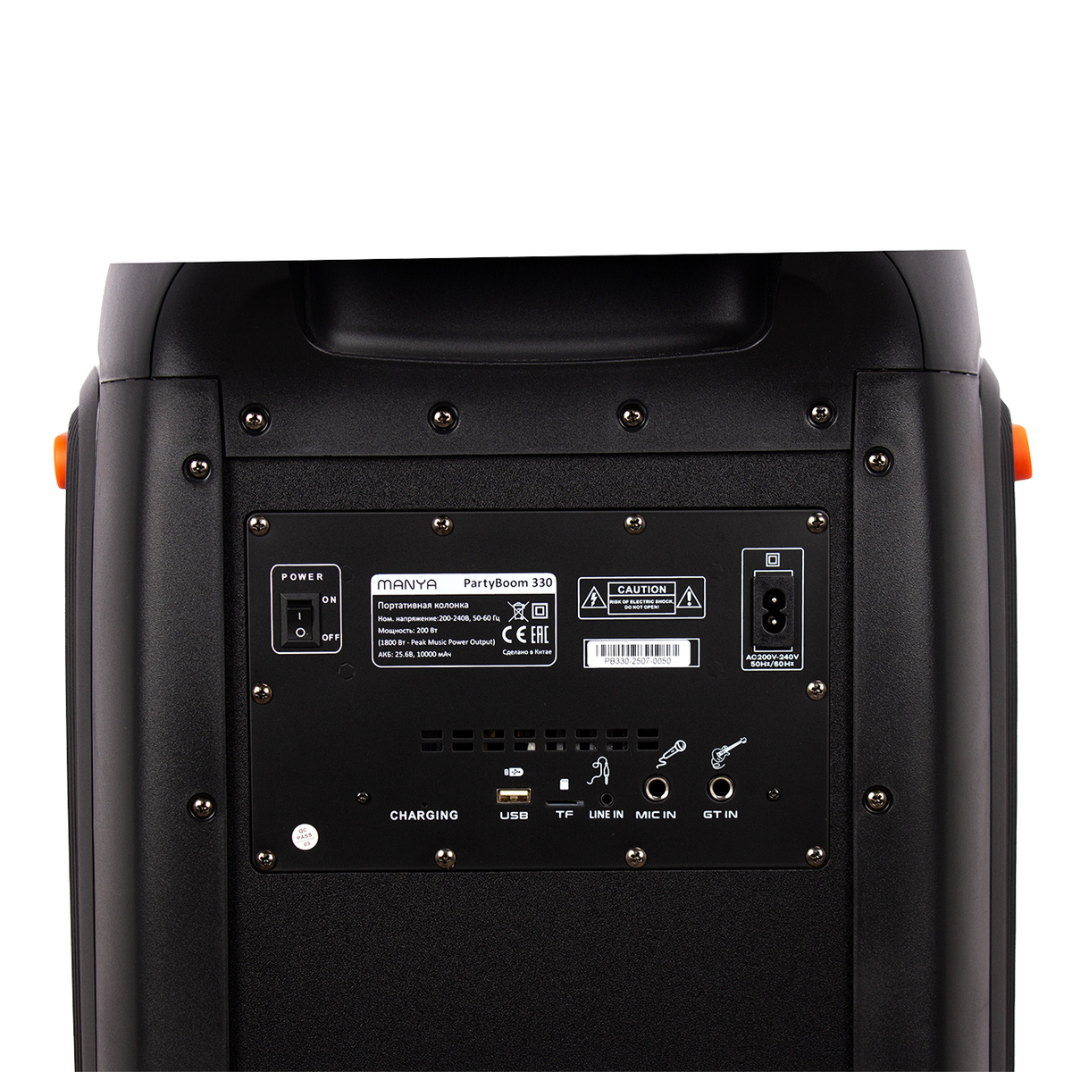 Динамическая LED подсветка. Корпус из дерева. Мощный двухканальный усилитель (модель TPA3221). Аудиопроцессор (DSP) с поддержкой радиоинтерфейса Bluetooth (модель BP1048). Беспроводной микрофон. Акустические динамики с резиновым подвесом